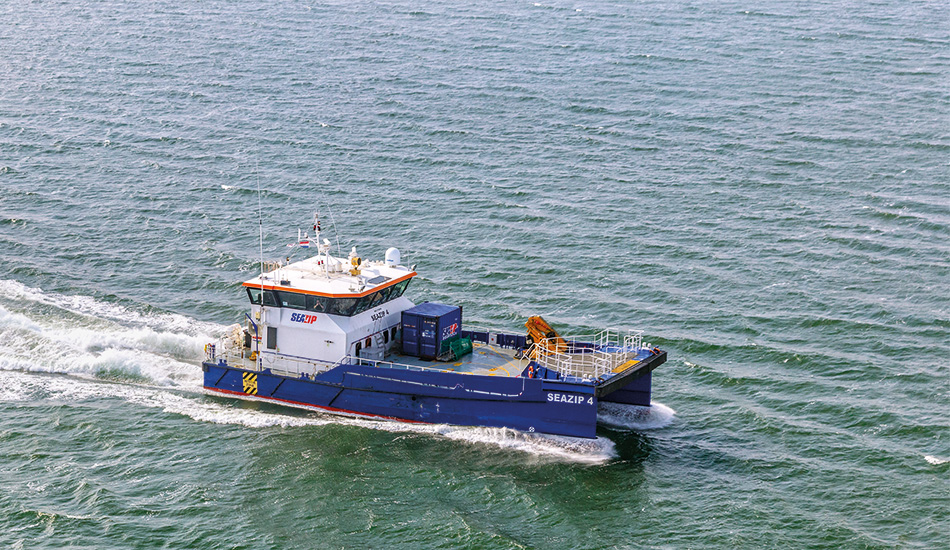 SeaZip 4’s competitive advantages include: more comfort, even in turbulent conditions; preservation of high speed in rough sea conditions; and a high level of fuel efficiency. The vessel is geared to strenuous and long-term deployment on the open sea and operates under class (Bureau Veritas). The 24 PAX crew transfer vessels of SeaZip Offshore Service are sailing under the Dutch flag.