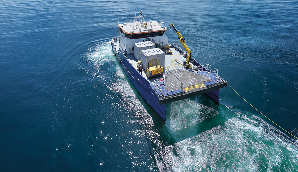 CTV SeaZip 4 is a catamaran with two symmetrical hulls, providing enhanced sea keeping for optimum comfort and safety. Each hull is based on the Sea Axe hull shape. The crew transfer vessel is propelled with propellers, which are driven by marine diesel engines.