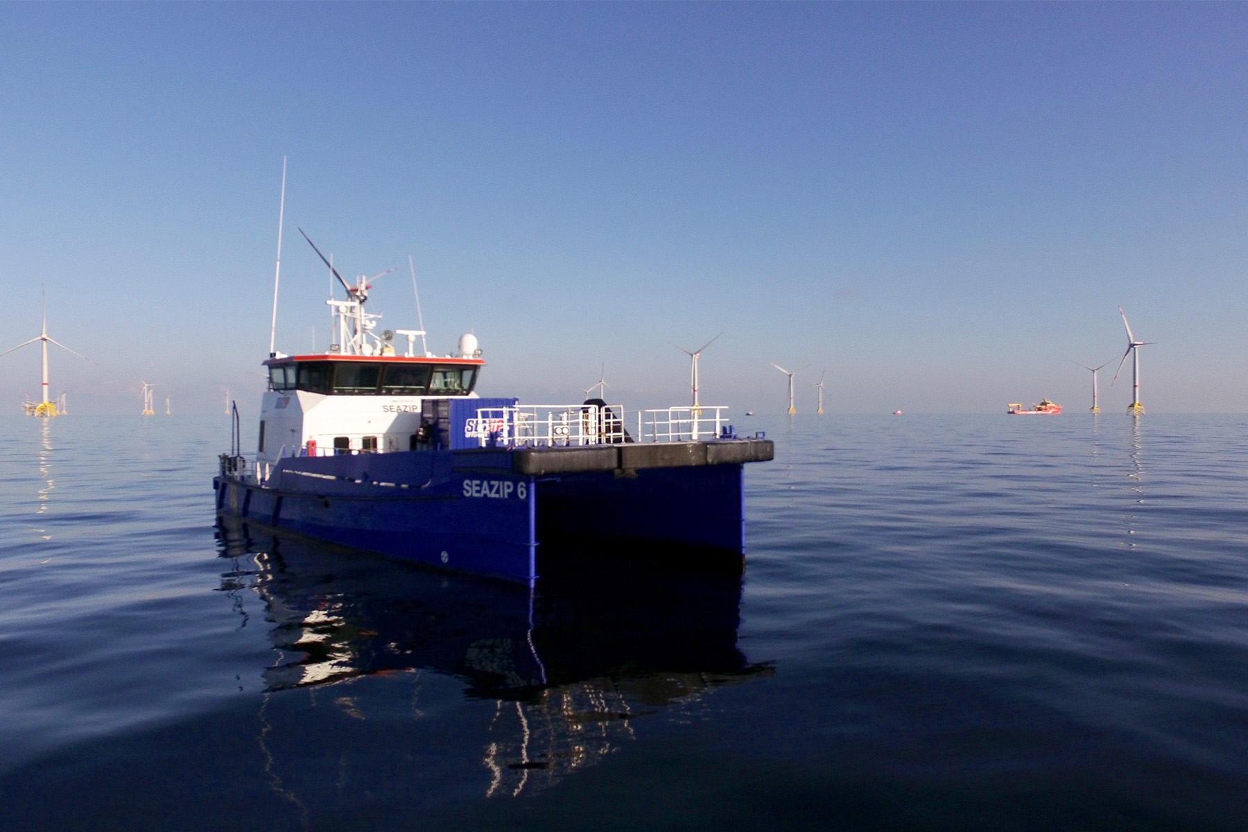 SeaZip 6’s competitive advantages include: more comfort, even in turbulent conditions; preservation of high speed in rough sea conditions; and a high level of fuel efficiency. The vessel is geared to strenuous and long-term deployment on the open sea and operates under class (Bureau Veritas). The 24 PAX crew transfer vessels of SeaZip Offshore Service are sailing under the Dutch flag.